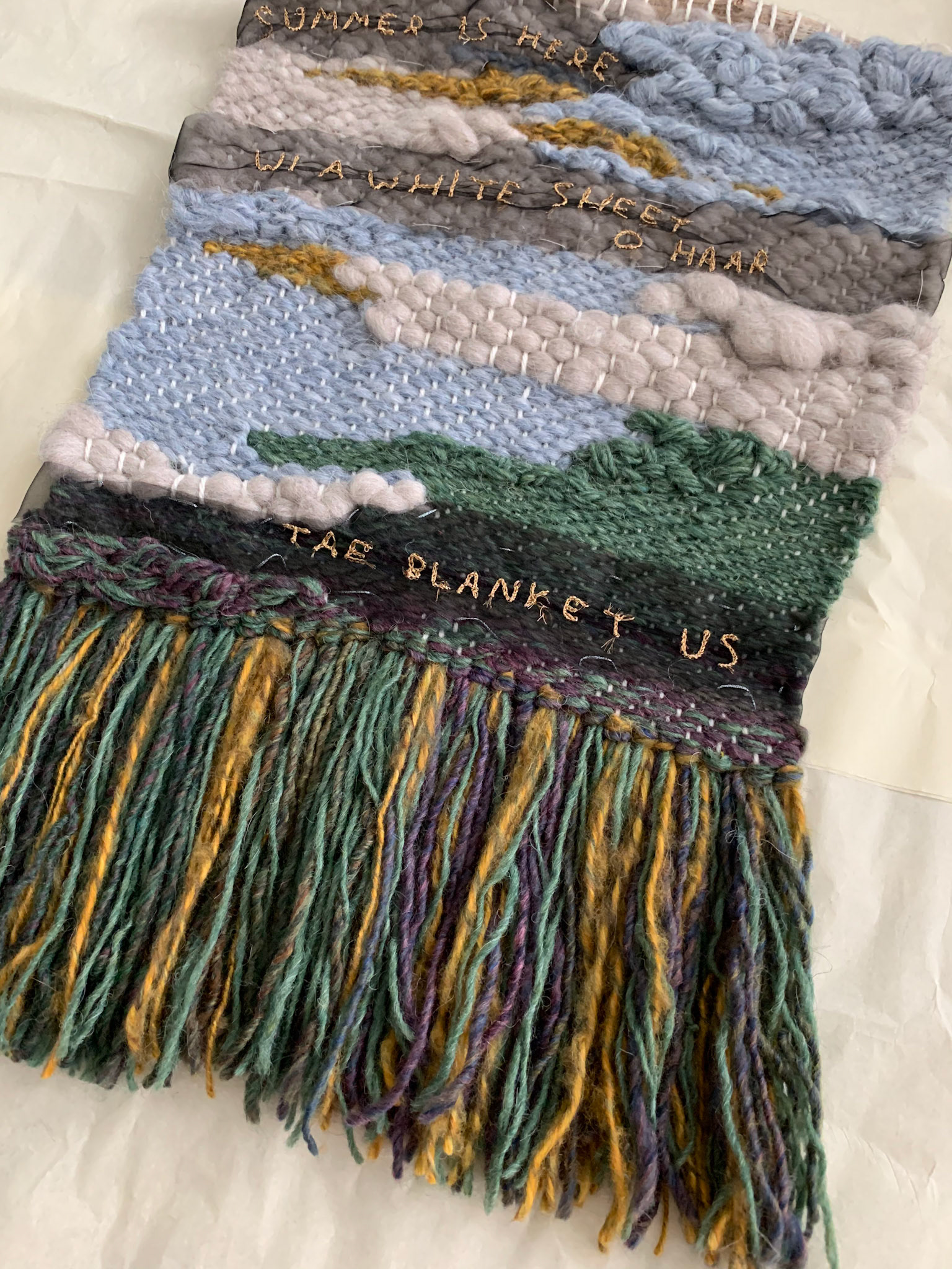 I produced ten fibre wall hangings, each inspired by, and featuring a different haiku in Doric (Northeast Scots) by writer Shane Strachan.