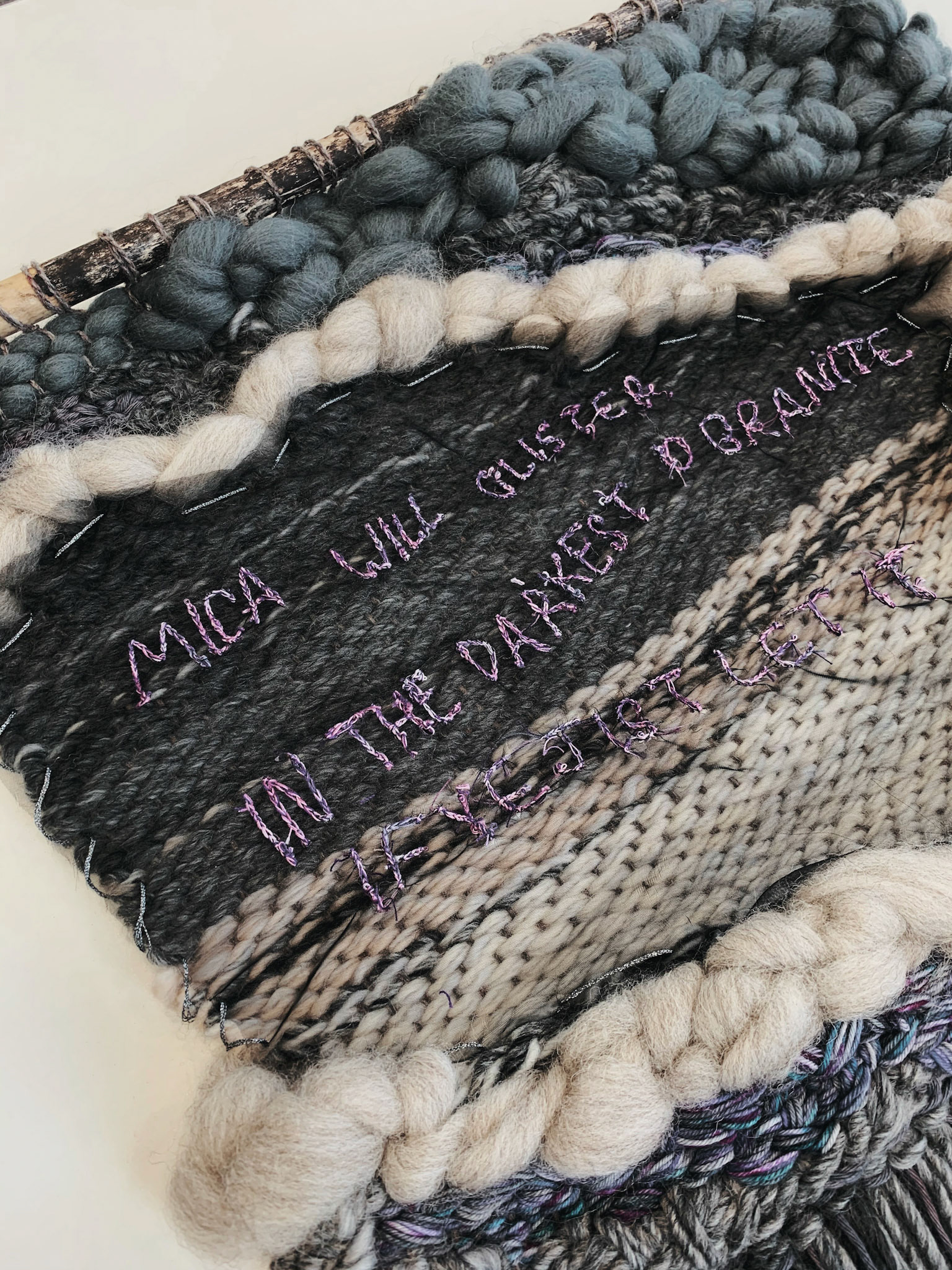 These tactile pieces were created in conjunction with workshops I led with service-users of RapeCrisis Grampian (RCG), drawing on my own experiences as a survivor of sexual asssalt, and using weaving as a tool towards wellbeing.
